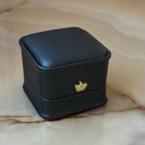 Шкіряна коробочка для каблучок смарагдова