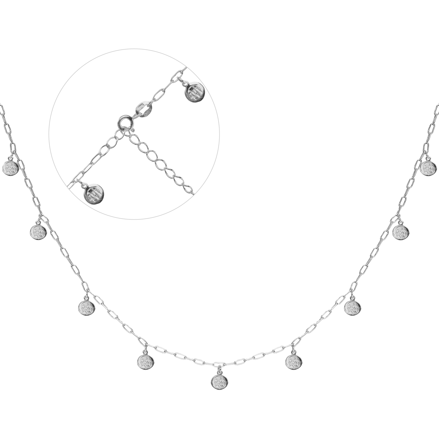 Срібне кольє "Монетки" родоване з подовжувачем 1029/13