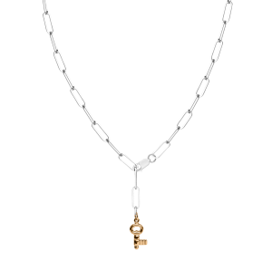 Срібне кольє родоване з ключиком в позолоті 455/1