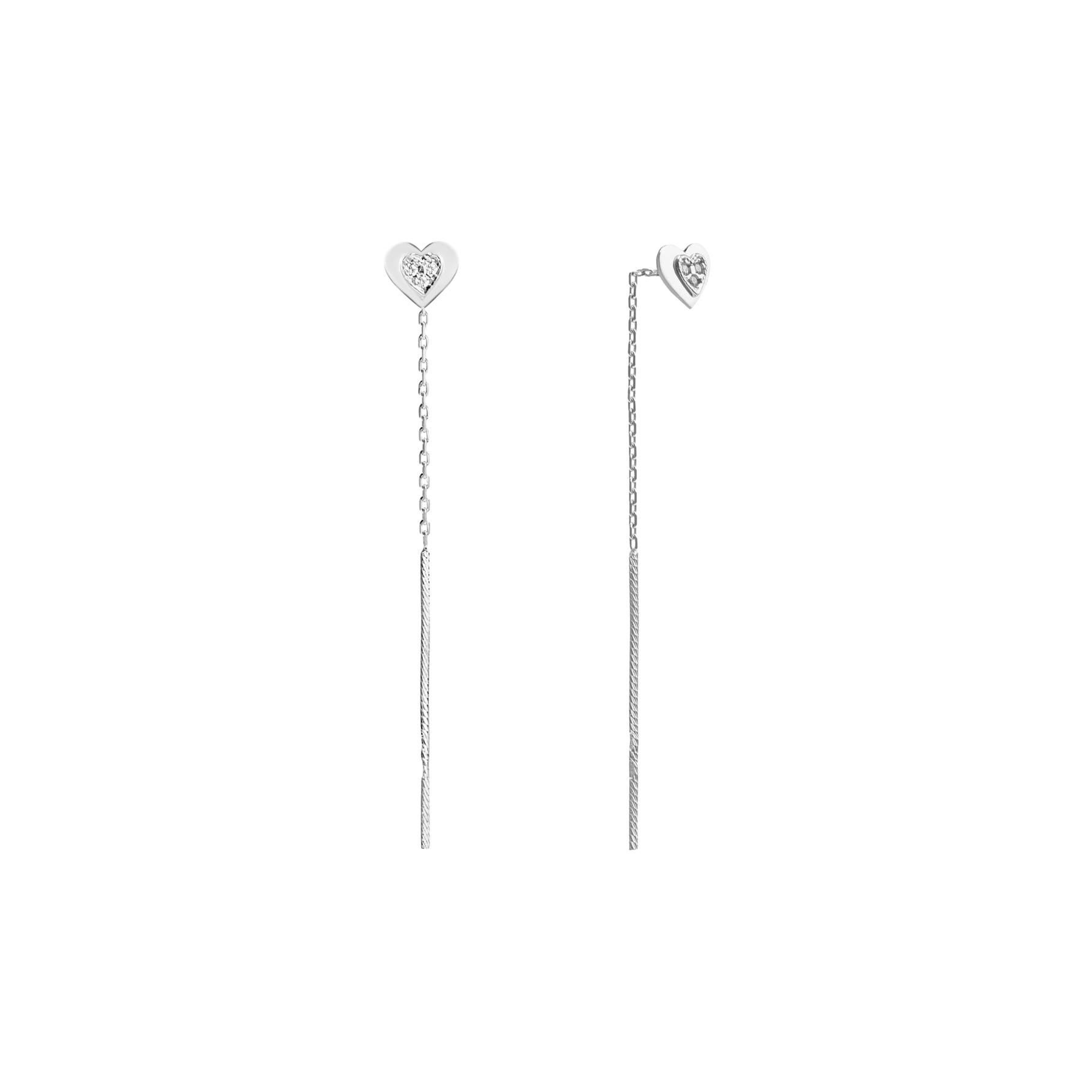 Срібні сережки протяжки родовані з фіанітами "Сердечки" 1032