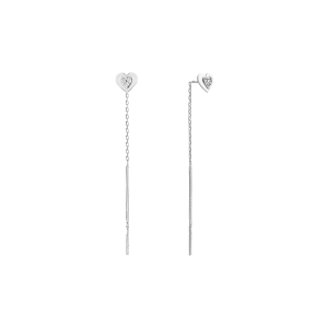 Витончені сережки у формі сердечок із ланцюжками-протяжками створені для тих, хто цінує ніжність і елегантність у кожній деталі. Центральна частина кожного сердечка прикрашена мініатюрними вставками, що нагадують розсип дорогоцінного каміння, додаючи легкого блиску та шарму.