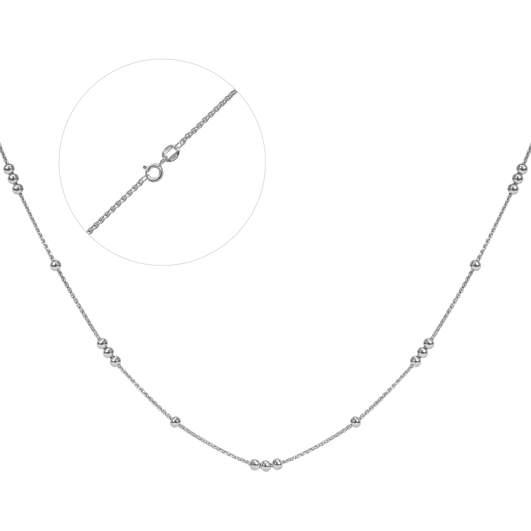 Срібний ланцюг з кульками КіШ4-40 родований на ланцюжку Колос